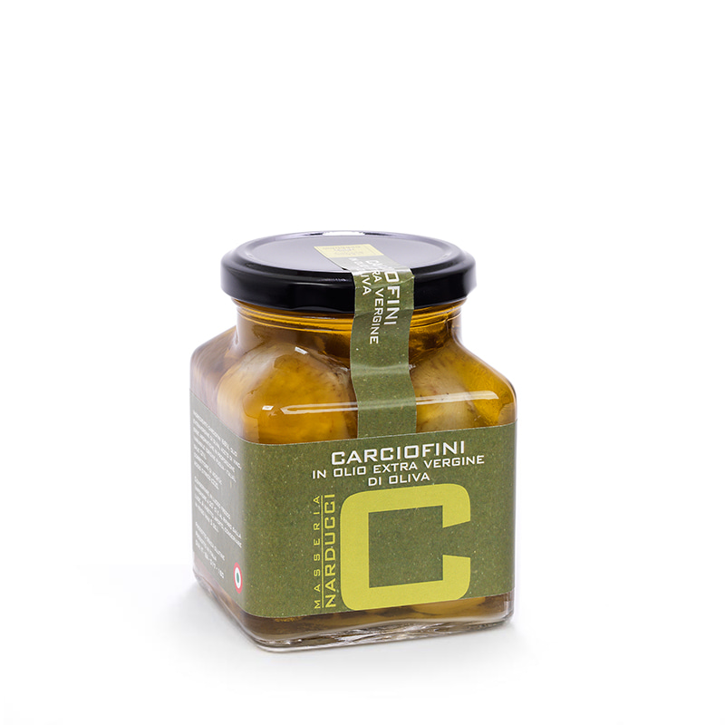 Carciofini 68%, olio extravergine d’oliva, aceto di vino (origine Puglia – Italia), sale 2%.