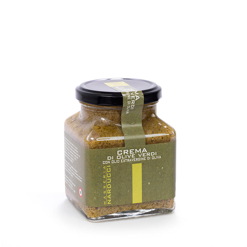 Questa gustosissima crema nasce dalla snocciolatura, macinatura e condimento con olio d’oliva delle olive naturali in salamoia. Ideale per essere spalmata su bruschette e antipasti, per condire la pasta, le carni e i pesci. Si presta a tutto pasto.